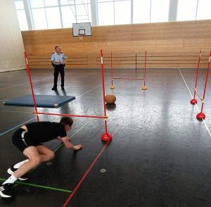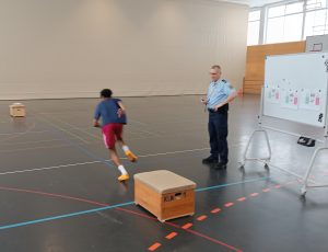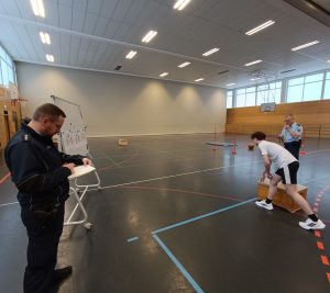 Die Bundespolizisten Herr Schuchert und Herr Biehl attestierten den Sportlehrkräften eine gute Arbeit bzgl. der Koordination und Ausdauer aller Jugendlichen.