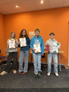 Im spannenden Entscheid lasen Lucia Polivka (6G) aus „Gangsteroma“, Tim Fiedler (6a) aus „Die ??? und die Silbermine“, Ansgar Kremer (6b) aus „Die ??? und das Erbe der Drachen“ und Kiara Weber (6C) aus „Sommer mit Delfinen“ ausgesuchte Textstellen vor.