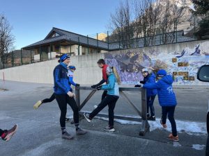 Da fast kein Schnee lag, konnten wir nur im Weltcup Stadion trainieren. Wir durften auf der anspruchsvollen Weltcup Strecke laufen, das war sehr aufregend. Das Training war abwechslungsreich gestaltet von Ausdauereinheiten bis zu Intervallen war alles dabei.